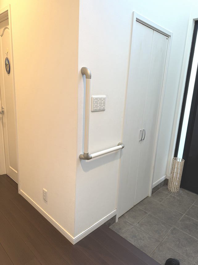 東京都目黒区の手すり取付業者:グリップグリップ 工事例No.089 玄関のL型手すり(ホワイト)