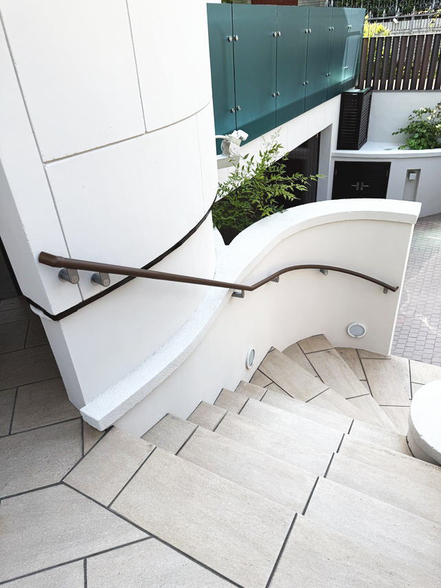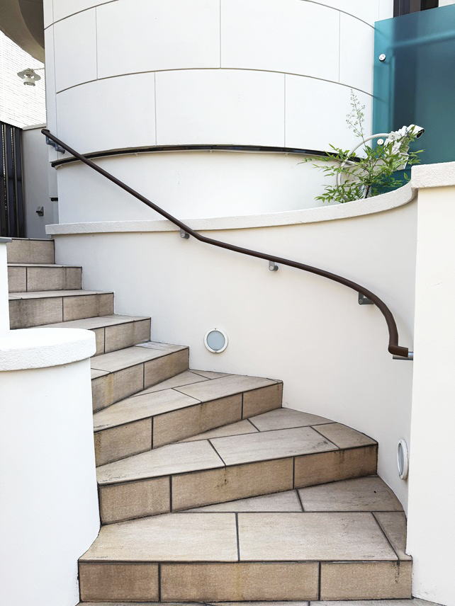 東京都目黒区の手すり取付業者:グリップグリップ 工事例No.087 曲線壁の屋外階段の手すり